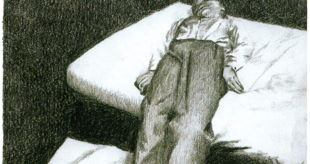 The drawings in the installation “Closer” feature dead people found in their home. They are drawn with extreme detail and precision, as a loving laying out on paper. The white of the paper plays an important role in the drawings and could be seen as a reference